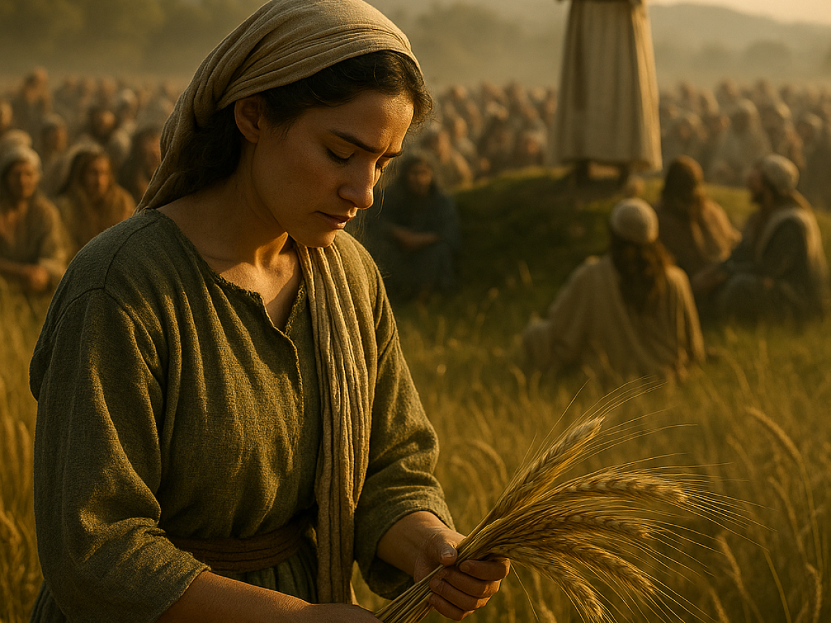 This pattern reaches back to Ruth. When Ruth, the Moabitess, comes to Bethlehem, the “house of bread,” she asks to glean among the sheaves. She is an outsider seeking mercy, humbling herself to pick up what falls from another’s harvest. Ruth “happens” upon the field of Boaz, the redeemer, whose name means “strength.” At mealtime he invites her, “Come here, eat some bread, and dip your morsel in the wine vinegar.” Ruth sits among the harvesters — a Gentile among Israelites — and “ate until she was satisfied and had some left over.” The language is identical to that used in the feeding of the 5,000 and 4,000 in Matthew.