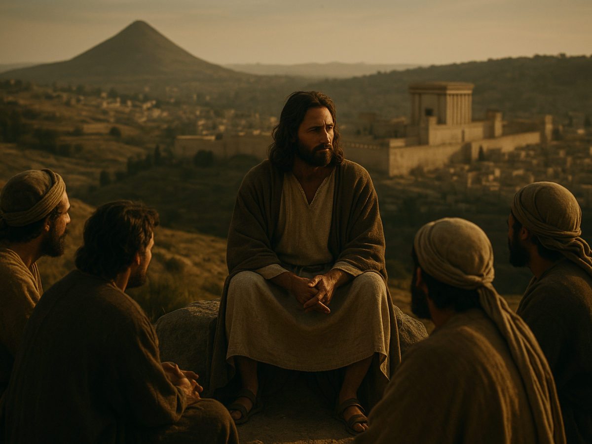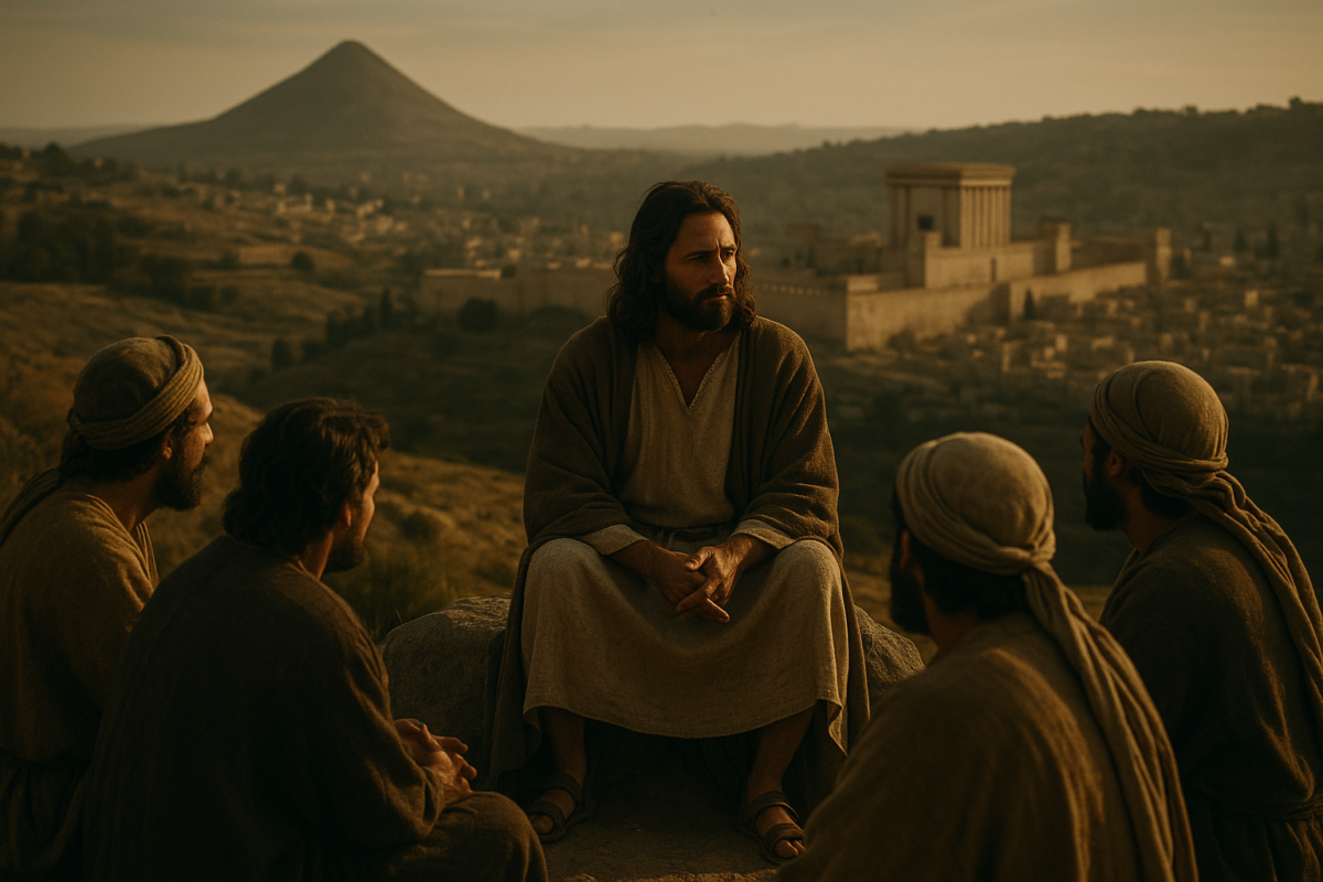 So imagine the scene in Matthew 24. Yeshua had just left the Temple. The disciples, stunned by His prophecy of its destruction “not one stone here will be left upon another” follow Him eastward. They cross the Kidron Valley and climb the Mount of Olives, that ridge long shadowing Jerusalem from the east. There, with the Temple still in full view, He sits. His disciples come privately, and ask: “Tell us, when will these things be? And what will be the sign of Your coming, and of the end of the age?” (Matt. 24:3).