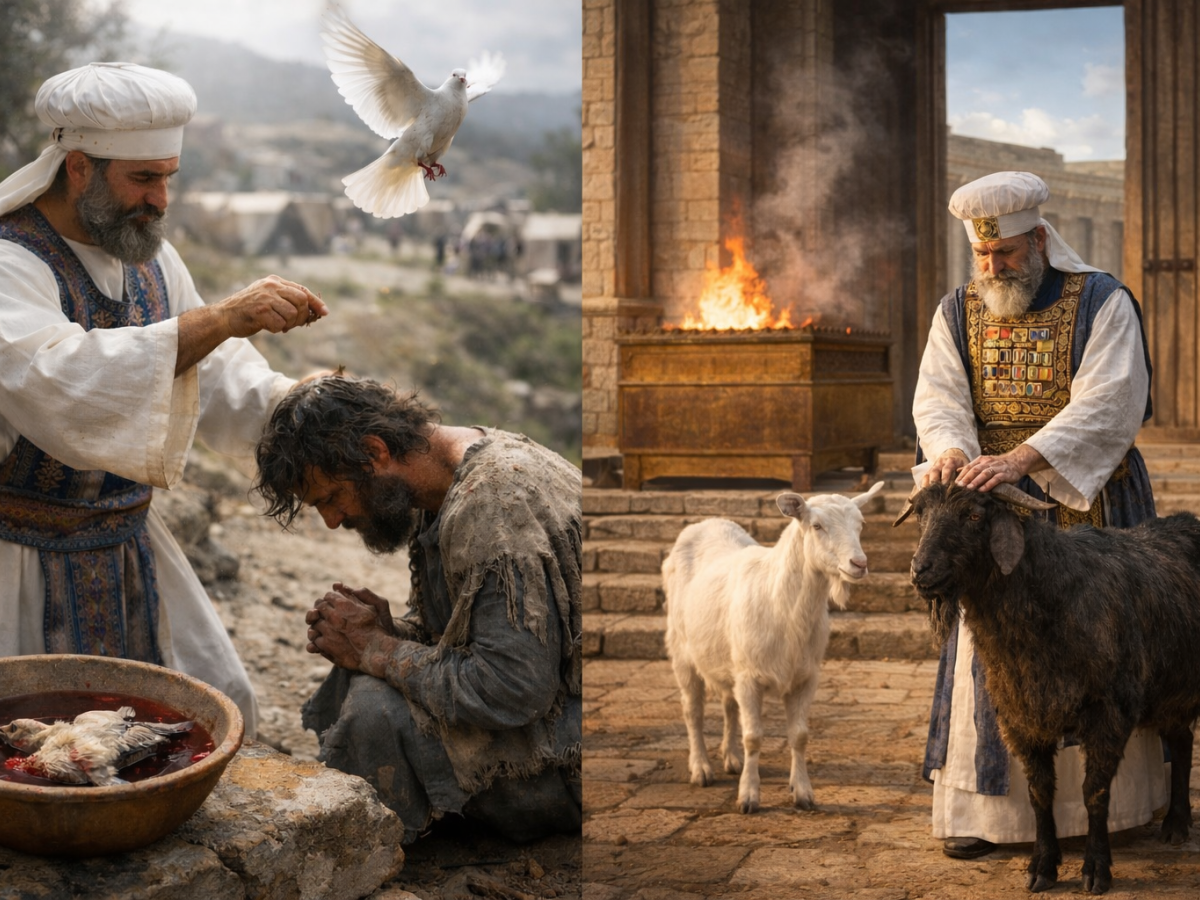 Purification in Scripture is never about managing impurity—it is about removing it entirely. The ritual for the metzora (one with a skin disease) and the service of Yom Kippur operate on the same underlying pattern. In Leviticus 14, the death and release of two birds restores the individual. In Leviticus 16, the death and release of two goats restores the sanctuary and the people.